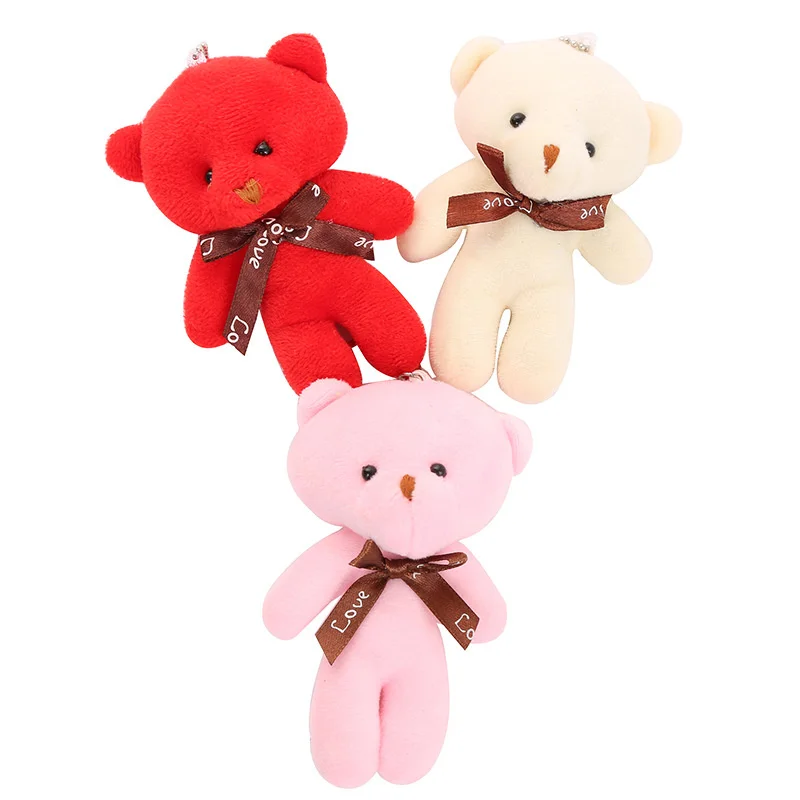 10pcs/pack 12cm Mini Bow Tie Teddy Bear Pendant Plush Toy Colorful Teddy Plush Keychain
